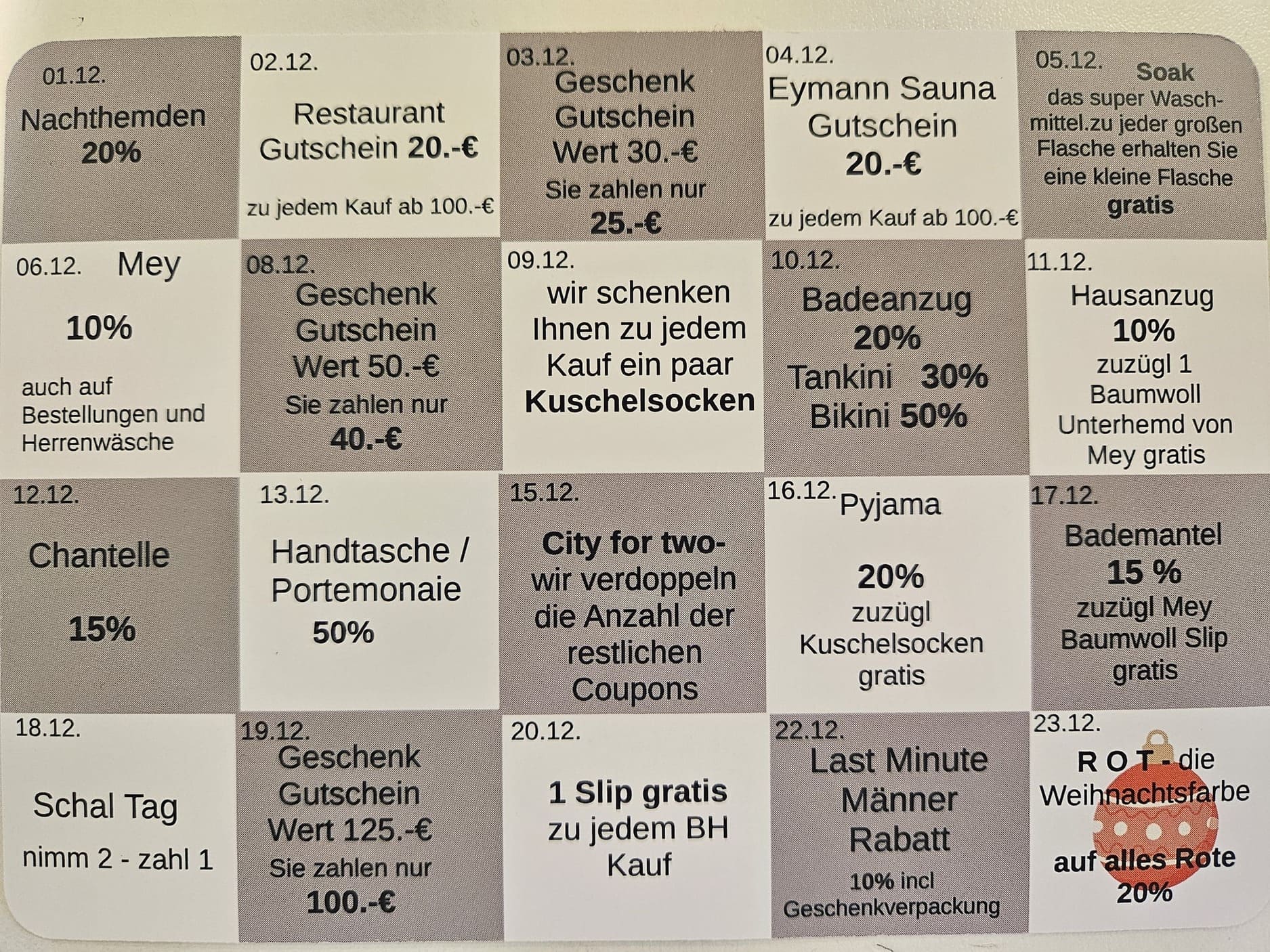 Unser Adventskalender- täglich wechselnde Angebote
